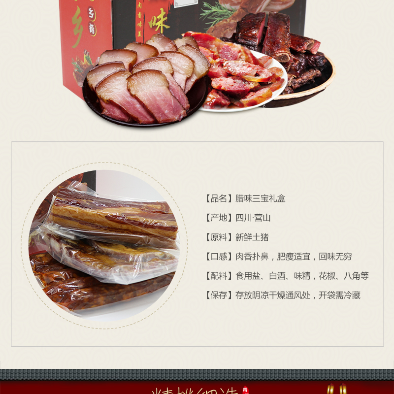 【自营】营乐淘·腊味三宝礼盒*腊肉排骨香肠各1斤